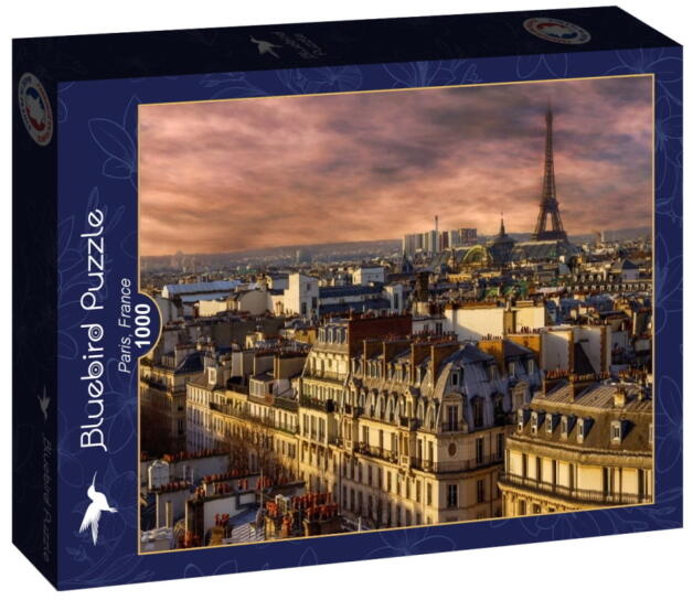 A francia  Bluebird  2019 óta van jelen a kirakók világpiacán. Magas minőségű, környezettudatos technológiával készült, mégis megfizethető áron elérhető puzzle képei közt elsősorban művészi alkotások találhatók. Az 1000 db-os Bluebird puzzle - Paris, France  című képén a francia főváros részlete látható az alkony fényeiben, háttérben az Eiffel toronnyal.