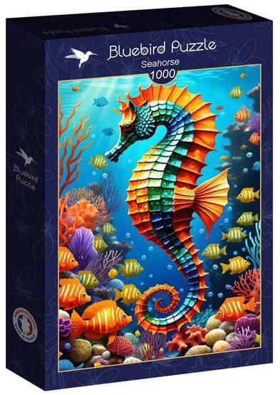 A francia  Bluebird  2019 óta van jelen a kirakók világpiacán. Magas minőségű, környezettudatos technológiával készült, mégis megfizethető áron elérhető puzzle képei közt elsősorban művészi alkotások találhatók. Az 1000 db-os Bluebird puzzle - Seahorse  című képén egy szépséges tengeri csikót láthatunk színes halakkal és korallokkal körülvéve.