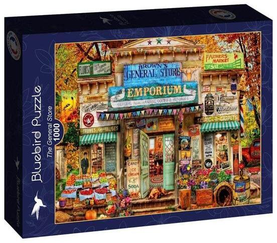 A francia  Bluebird  2019 óta van jelen a kirakók világpiacán. Magas minőségű, környezettudatos technológiával készült, mégis megfizethető áron elérhető puzzle képei közt elsősorban művészi alkotások találhatók. Az 1000 db-os Bluebird puzzle - The General Store  című képén Aimee Stewart alkotása látható. A nosztalgikus hangulatú boltban minden kapható, amire csak szükségünk lehet: zöldségek, gyümölcsök, édességek és mindenféle élelmiszer, virágok, szerszámok, de még üzemanyag is!