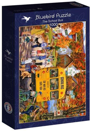 A francia  Bluebird  2019 óta van jelen a kirakók világpiacán. Magas minőségű, környezettudatos technológiával készült, mégis megfizethető áron elérhető puzzle képei közt elsősorban művészi alkotások találhatók. Az 1000 db-os Bluebird puzzle - The School Bus  című képén egy őszi színekben pompázó amerikai kisváros utcaképét láthatjuk, amint éppen megérkezik az iskolabusz a vidám gyerekekkel.