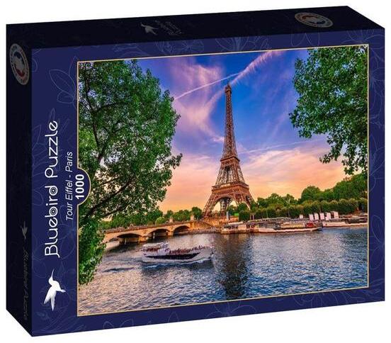 A francia  Bluebird  2019 óta van jelen a kirakók világpiacán. Magas minőségű, környezettudatos technológiával készült, mégis megfizethető áron elérhető puzzle képei közt elsősorban művészi alkotások találhatók. Az 1000 db-os Bluebird puzzle -  Tour Eiffel, Paris  című képén a párizsi Eiffel-tornyot láthatjuk, ezúttal a Szajnáról.