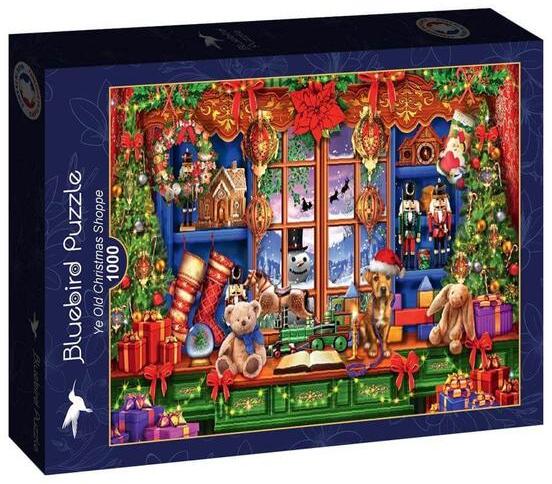 A francia  Bluebird  2019 óta van jelen a kirakók világpiacán. Magas minőségű, környezettudatos technológiával készült, mégis megfizethető áron elérhető puzzle képei közt elsősorban művészi alkotások találhatók. Az 1000 db-os Bluebird puzzle - Ye Old Christmas Shoppe  című képén egy régimódi játékbolt látható. A karácsonyi hangulat garantált: diótörők, karácsonyfa, mézeskalács házikó és az ablakon bekukucskáló hóember.