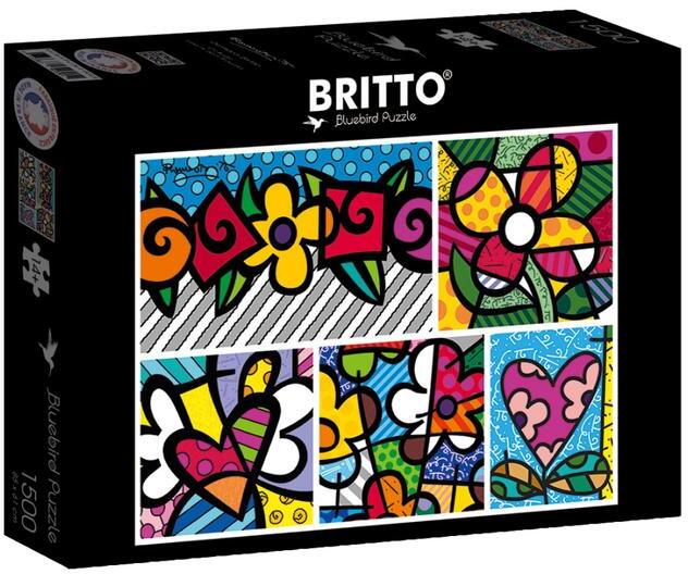 Bluebird Puzzle 1500 db-os puzzle - Romero Britto - Collage: Hearts and Flowers (90020) (90020)