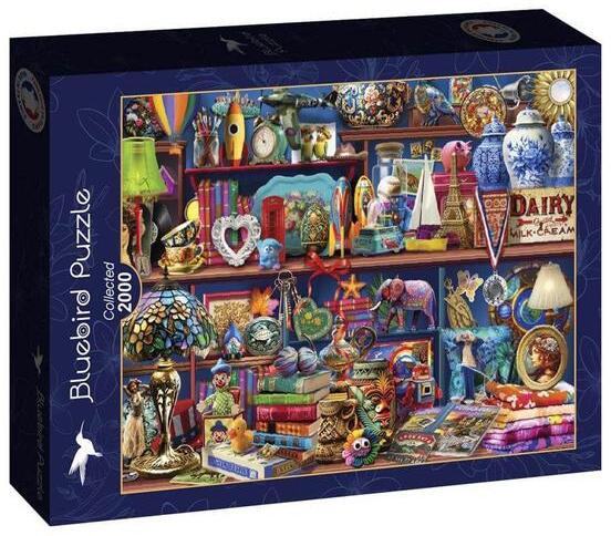 A francia  Bluebird  2019 óta van jelen a kirakók világpiacán. Magas minőségű, környezettudatos technológiával készült, mégis megfizethető áron elérhető puzzle képei közt elsősorban művészi alkotások találhatók. A 2000 db-os Bluebird puzzle - Collected  című képén egy csodás gyűjteményt láthatunk. Találunk itt mindenféle érdekes tárgyakat a világ minden részéről, porcelánokat, képeket, játék figurákat, könyveket és különböző szuveníreket.