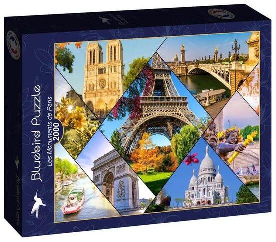 A francia  Bluebird  2019 óta van jelen a kirakók világpiacán. Magas minőségű, környezettudatos technológiával készült, mégis megfizethető áron elérhető puzzle képei közt elsősorban művészi alkotások találhatók. A 2000 db-os Bluebird puzzle - Les Monuments de Paris  című képén Párizs nevezetességei láthatóak, többek között a Notre Dame, az Eiffel-torony és a Diadalív.