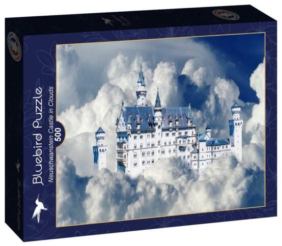 Bluebird 500 db-os puzzle - Neuschwanstein Castle in Clouds  című képén a világ egyik legismertebb kastélya, a bajorországi Neuschwanstein kastély látható, ahogy a felhők közé emelkedik magas tornyaival. A kastélyt II. Lajos bajor király emeltette saját gyermekkori álmainak megvalósítására.