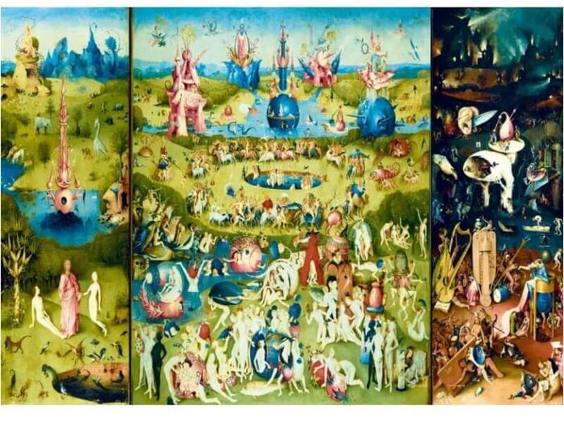 Az 1000 db-os Bluebird Art by puzzle képén Hieronymus Bosch rejtélyes és misztikus világát tárja elénk ez a festmény, mely tele van különös lényekkel és fantastikus jelenetekkel.