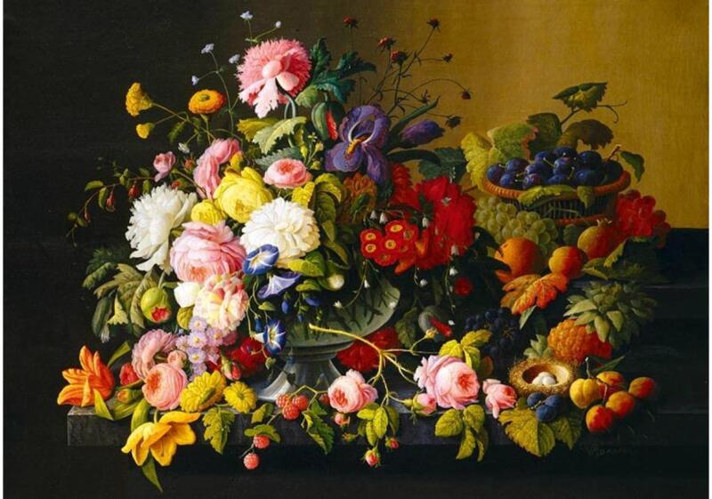 Bluebird Puzzle 60289 - Severin Roesen - Still Life Flowers and Fruit 1855 - 1000 db-os Art by puzzle (60289)