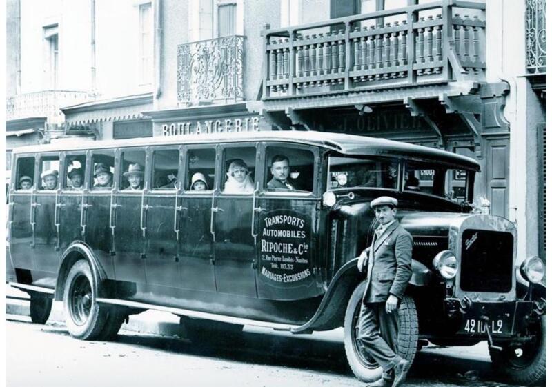 Bluebird 500 db-os puzzle - Transports Automobiles Ripoche & Cie  című képen régi idők közlekedési eszközét láthatjuk. A  Ripoche & Cie cég automobilja a násznép fuvarozását végzi.