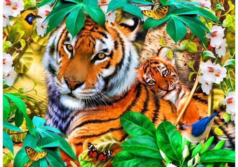 A francia  Bluebird  2019 óta van jelen a kirakók világpiacán. Magas minőségű, környezettudatos technológiával készült, mégis megfizethető áron elérhető puzzle képei közt elsősorban művészi alkotások találhatók. Az 1500 db-os Bluebird puzzle - Into the Shadows  című képén egy anyatigris látható a kölykével trópusi környezetben, pillangókkal és madarakkal.
