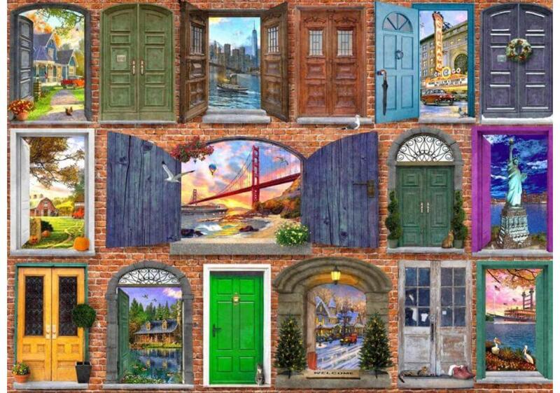 A francia  Bluebird  2019 óta van jelen a kirakók világpiacán. Magas minőségű, környezettudatos technológiával készült, mégis megfizethető áron elérhető puzzle képei közt elsősorban művészi alkotások találhatók. Az 1500 db-os Bluebird puzzle - Doors of USA  című képén különböző ikonikus amerikai tájakat láthatunk szebbnél szebb színes ajtók mögött.