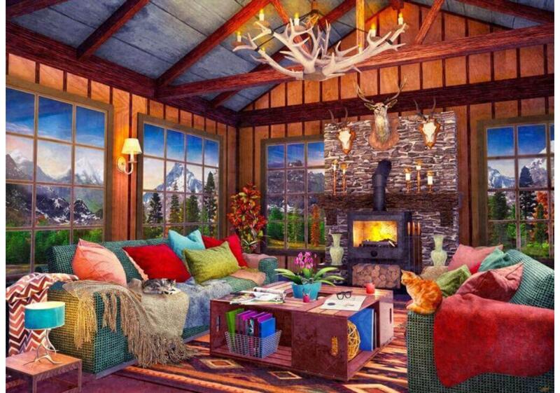 A francia  Bluebird  2019 óta van jelen a kirakók világpiacán. Magas minőségű, környezettudatos technológiával készült, mégis megfizethető áron elérhető puzzle képei közt elsősorban művészi alkotások találhatók. Az 500 db-os Bluebird puzzle - Cabin Holiday Home  című képén egy erdei nyaraló hangulatos nappalijából csodálhatjuk meg a kilátást a hegyekre, miközben a kandallóban tűz ropog és cicák pihennek a kanapén.