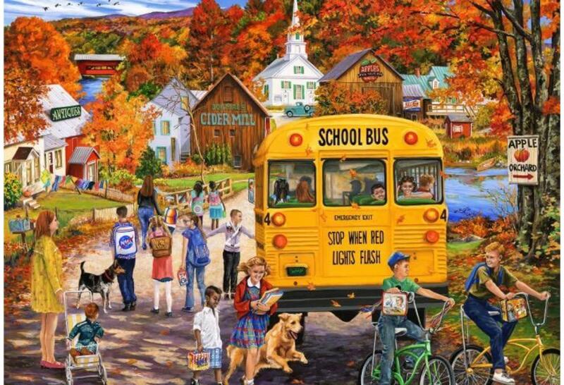 A francia  Bluebird  2019 óta van jelen a kirakók világpiacán. Magas minőségű, környezettudatos technológiával készült, mégis megfizethető áron elérhető puzzle képei közt elsősorban művészi alkotások találhatók. Az 1000 db-os Bluebird puzzle - The School Bus  című képén egy őszi színekben pompázó amerikai kisváros utcaképét láthatjuk, amint éppen megérkezik az iskolabusz a vidám gyerekekkel.