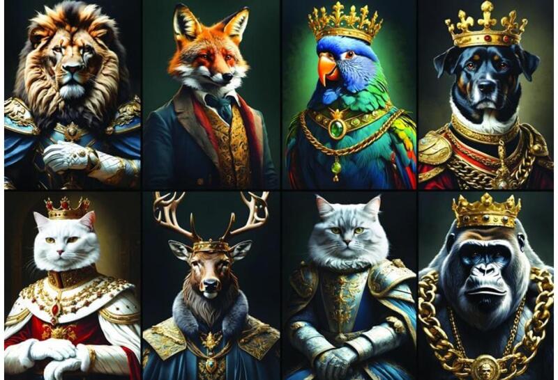 A francia  Bluebird  2019 óta van jelen a kirakók világpiacán. Magas minőségű, környezettudatos technológiával készült, mégis megfizethető áron elérhető puzzle képei közt elsősorban művészi alkotások találhatók. Az 1000 db-os Bluebird puzzle - Anthropomorphisme , azaz antropomorfizmus, élő vagy élettelen dolgok, jelenségek, elvont fogalmak emberi vagy emberinek hitt tulajdonságokkal való felruházása. A képen állatok láthatóak uralkodóként, arisztokrataként ábrázolva.