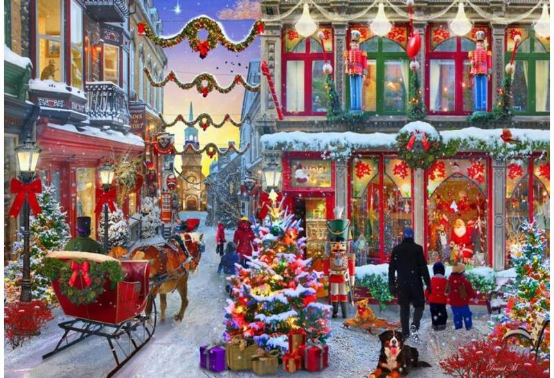 A francia  Bluebird  2019 óta van jelen a kirakók világpiacán. Magas minőségű, környezettudatos technológiával készült, mégis megfizethető áron elérhető puzzle képei közt elsősorban művészi alkotások találhatók. Az 1000 db-os Bluebird puzzle - Joy of Christmas  című képén egy hóval borított, karácsonyi hangulatú utcát láthatunk, lovasszánnal, karácsonyfákkal, diótörőkkel és ajándékboltokkal.