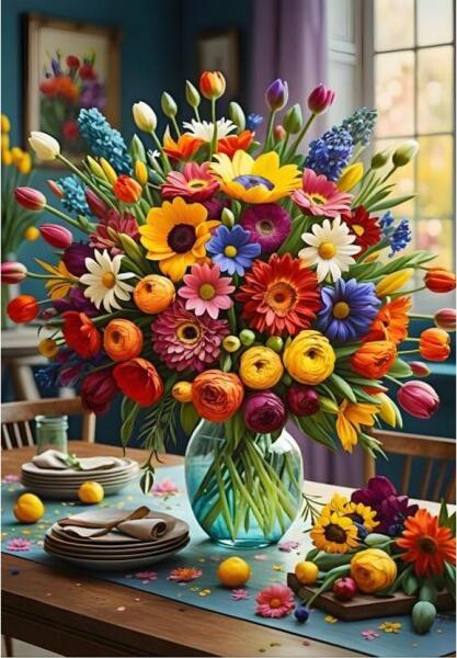 A francia  Bluebird  2019 óta van jelen a kirakók világpiacán. Magas minőségű, környezettudatos technológiával készült, mégis megfizethető áron elérhető puzzle képei közt elsősorban művészi alkotások találhatók. Az 1000 db-os Bluebird puzzle - Colourful Bouquet  című képén látható színpompás virágcsokorban csak úgy virítanak a boglárkák, tulipánok és napraforgók . Egy csodaszép, vidám csendélet.