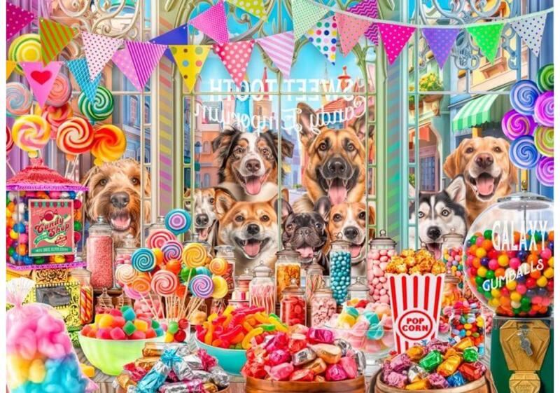 A Bluebird 500 db-os puzzle - Sweet Tooth Candy  kirakó az édesszájúak mekkája! Rengeteg finomság visz kísértésbe: cukorkák, nyalókák, vattacukor és csoki minden mennyiségben. Az ablakon bebámuló cuki kutyusok is biztosan megkóstolnák, amit csak érnek!