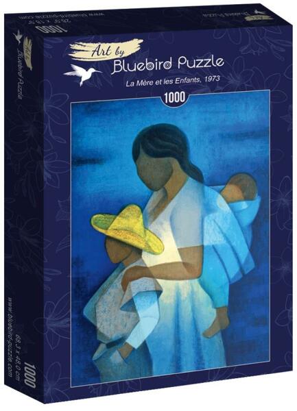 Az 1000 db-os Bluebird Art by puzzle képén a francia festőművész egyik kedvenc témája, az anyaság jelenik meg: az édesanya hátán egy csecsemő, míg előtte nagyobb gyermeke látható.