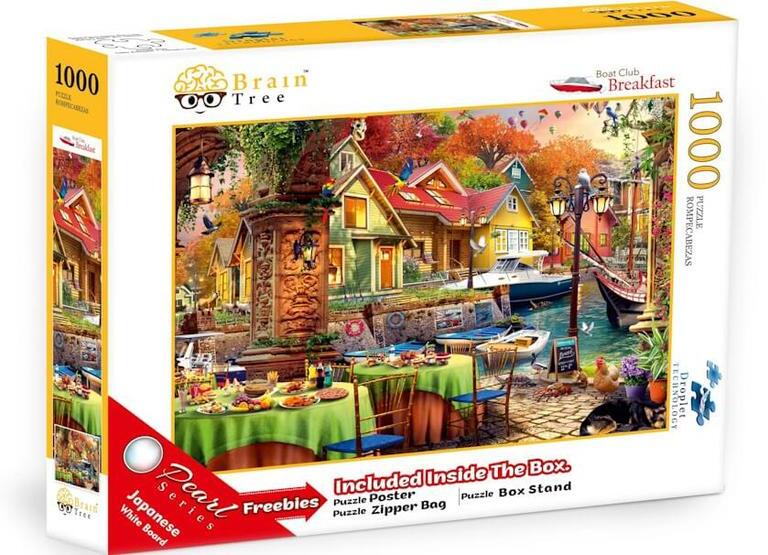 A Brain Tree a világ egyik vezető puzzle gyártója, amely kiváló minőségű kirakóival vált ismertté. Minden puzzle darabot egyedi, véletlenszerű vágás sal készítenek, amely különlegessé teszi azokat. A kirakó darabok 1,75 mm-es vastagságuk miatt rendkívül tartósak és masszív ak. A Droplet technológiá nak köszönhetően a kirakó felülete tükröződésmentes , ami még élvezetesebbé teszi az összerakást. A puzzle doboza több kiegészítőt is tartalmaz: poszter , cipzáras, visszazárható táska , 4 db kirakó válogató doboz a rendszerezéshez és egy doboztartó , amely stabilan tartja a puzzle dobozát, kirakózás közben. A  Brain Tree 1000 db-os puzzle - Boat club breakfast (2102151) kirakó képén egy csodálatos hajókikötő látható.