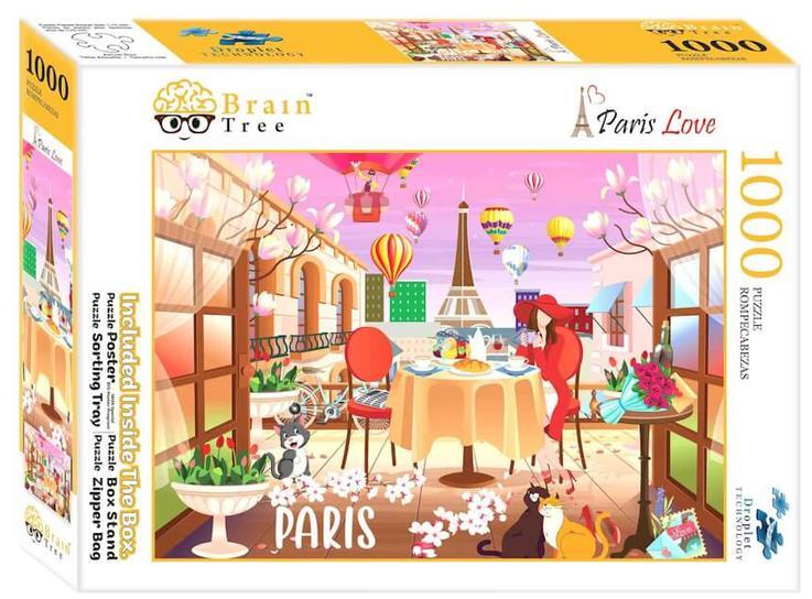 A Brain Tree a világ egyik vezető puzzle gyártója, amely kiváló minőségű kirakóival vált ismertté. Minden puzzle darabot egyedi, véletlenszerű vágás sal készítenek, amely különlegessé teszi azokat. A kirakó darabok 1,75 mm-es vastagságuk miatt rendkívül tartósak és masszív ak. A Droplet technológiá nak köszönhetően a kirakó felülete tükröződésmentes , ami még élvezetesebbé teszi az összerakást. A puzzle doboza több kiegészítőt is tartalmaz: poszter , cipzáras, visszazárható táska , 4 db kirakó válogató doboz a rendszerezéshez és egy doboztartó , amely stabilan tartja a puzzle dobozát, kirakózás közben. A  Brain Tree 1000 db-os puzzle - Paris Love (2102103) kirakó képén egy romantikus párizsi kép látható.
