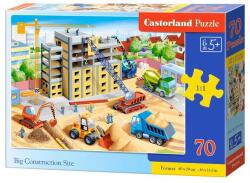 A Castorland 70 db-os puzzle - A nagy építkezés  című képén egy nagyszabású építkezést láthatunk daruval, betonkeverővel, teherautóval és rakodókkal.