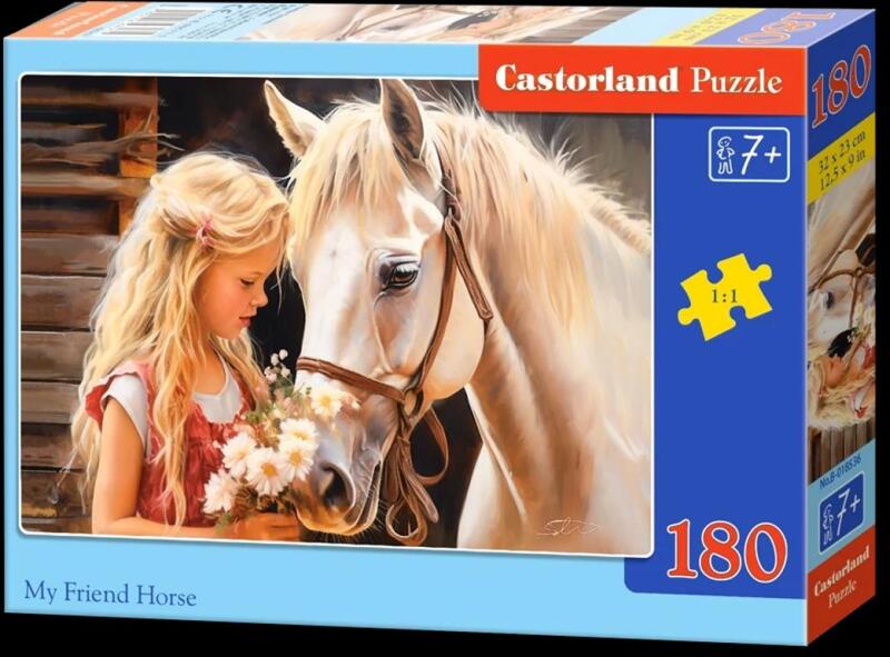 A Castorland kirakók sokszínűségükről ismertek és igen széles választékban kaphatóak. Hagyományos képi témáik mellett különlegesebb, városokat és nevezetességeket ábrázoló kirakókat is találunk kínálatukban. A Castorland 180 db-os puzzle Barátok című képen egy aranyos kislány és lova látható.