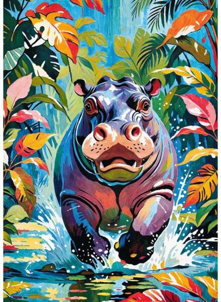 CherryPazzi 20272 - Happy Hippo - 500 db-os puzzle egy vidám, élénk színekben pompázó vízilovat ábrázol, amely játékosan kel életre a művészi részletekben.