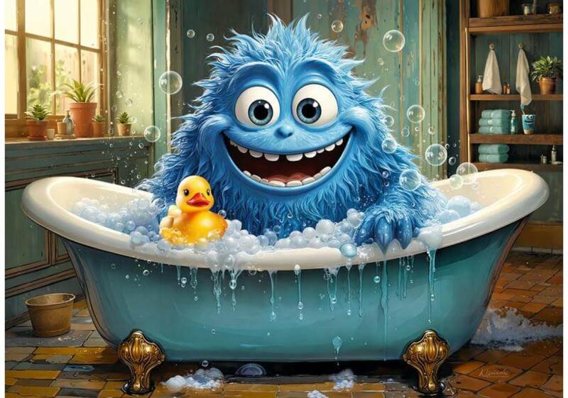 A lengyel Timaro vállalat egy új kirakó márkával, a CherryPazzi puzzle branddel lépett a világpiacra 2021-ben. A masszív dobozok 2,2 mm vastagságú, magas minőségű, változatos formájú kirakó darabokat rejtenek, melyek csak oda illeszkednek, ahová a képben valók. Mind a CherryPazzi puzzle, mind a doboza gyönyörű, szaténsima felülettel rendelkezik, hogy ne csak a kirakózás folyamata, de maga a kirakott kép is minél inkább örömteli élményt nyújtson. A  CherryPazzi 31155 - Just You and Me - 1000 db-os puzzle képe egy bájos és vidám jelenetet ábrázol, ahol egy aranyos kék szörnyecske élvezi a fürdőzést egy kis gumikacsa társaságában.
