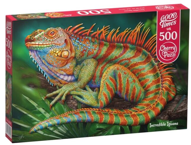 CherryPazzi 500 db-os puzzle -  Incredible Iguana - című képén egy csodálatos leguán látható.  A művész megörökítette ennek a hüllőnek a szépségét a természetben, hogy mindenki élvezhesse.