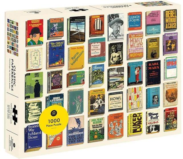 Klasszikus könyvborítók színes válogatása díszíti a Chronicle Books 1000 db-os puzzle - Classic Paperbacks (60000) képét. Könyvrajongóknak tökéletes választás, amely egyszerre szórakoztató és nosztalgikus.