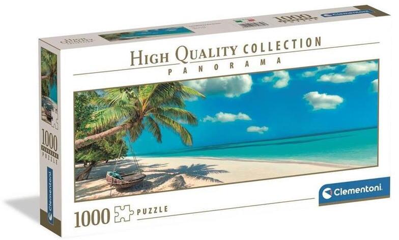 Az olasz Clementoni kirakók kiváló minőségű, strapabíró darabokból készülnek, a puzzle széles választékban kapható minden korosztályt megcélozva. A Clementoni 1000 db-os Panoráma puzzle - High Quality Collection - Hinta az Óceán mellett (39884) kirakó képén egy csodálatos parton függőhinta látható.