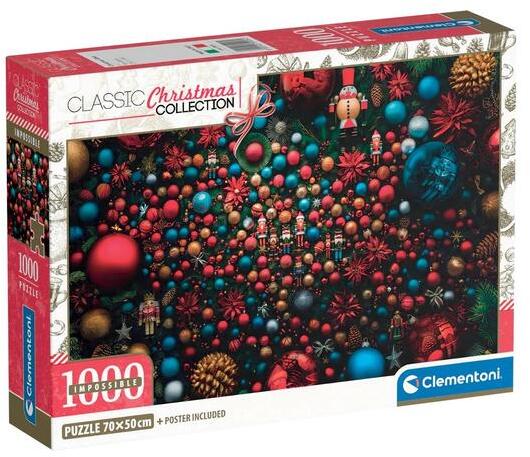 Az olasz Clementoni kirakók kiváló minőségű, strapabíró darabokból készülnek, a puzzle széles választékban kapható minden korosztályt megcélozva. A Clementoni 1000 db-os Compact puzzle – Lehetetlen karácsonyi hangulat (39926) egy részletgazdag kirakó, amelyen különféle karácsonyi díszek láthatók, hangulatos ünnepi motívumokkal.