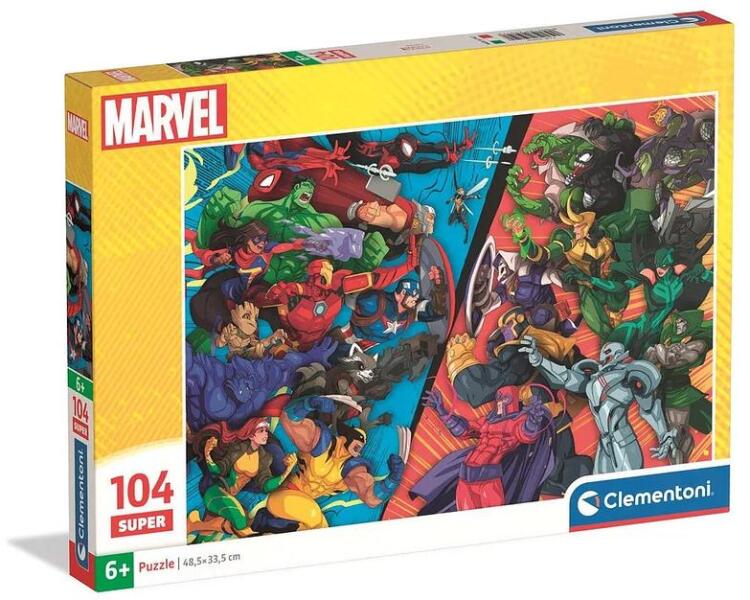 Az olasz Clementoni kirakók kiváló minőségű, strapabíró darabokból készülnek, a puzzle széles választékban kapható minden korosztályt megcélozva. A Clementoni 104 db-os puzzle – Marvel Hősök kontra Gonosztevők (25059) izgalmas jelenetet ábrázol, ahol a legismertebb szuperhősök csapnak össze a rettegett gonosztevőkkel egy látványos összecsapásban.