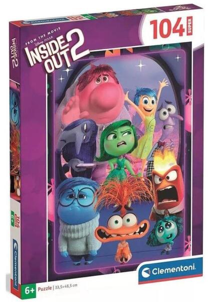 Az érzelmek újra akcióban! Derű, Bánat, Harag és a többiek együtt próbálnak rendet tenni Riley érzései között a Clementoni 25072 - Agymanók 2 - 104 db-os puzzle  színes, mozgalmas jelenetében.