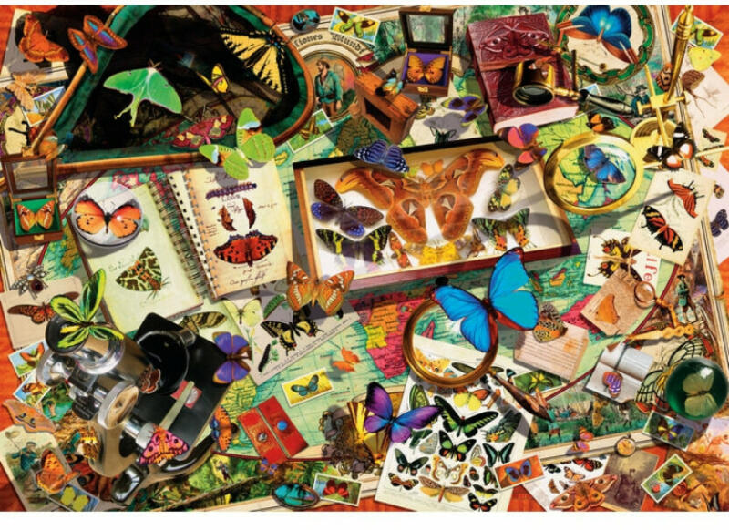 A Clementoni 500 db-os puzzle Lepkegyűjtő - a kirakott képeken csodálatos lepkéket, pillangókat láthatunk.