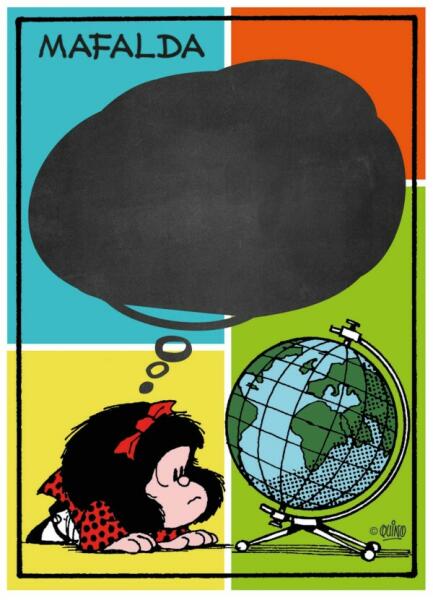 A Clementoni 1000 db-os puzzle Blackboard Mafalda a képen   egy argentin képregény szereplője látható, Mafalda. A termék kirakást követően krétával írható, rajzolható.