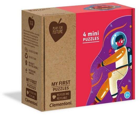 Az olasz Clementoni cég legújabb, környezettudatos és a fenntartható jövőt megcélzó Play for future termékcsaláddal kíván hozzájárulni az új generáció ilyen irányba történő fejlődéséhez. A vállalat legfőbb üzenete: Tartsuk tiszteletben a természetet. A teljesen újrahasznosított anyagokból készült termékeken egy szív alakú levél található. A Play for future Első puzzle - A fellegekben a legkisebb korosztály számára készült. A puzzle darabkák nagyobbak és vastagabbak a megszokottnál, így a kicsi kezek is könnyen boldogulnak az összeillesztésükkel. A puzzle kirakása számos képességet fejleszt, finomítja a kézmozdulatokat, fejleszti a koncentrációt és a megfigyelőképességet.