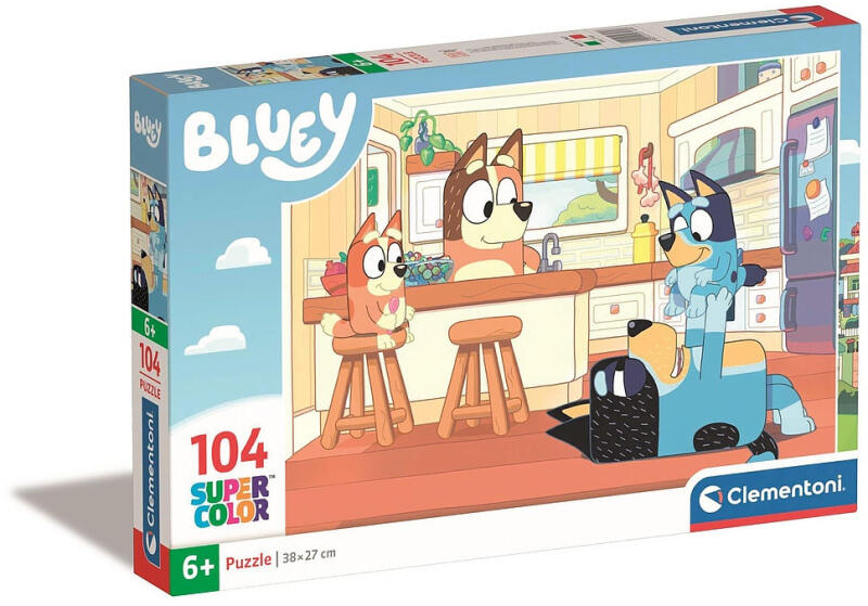 A  Clementoni 104 darabból álló Bluey puzzle egy szórakoztató és kihívást jelentő játék az egész család számára. A kép a SuperColor kollekció részeként került létrehozásra, és garantálja az élénk és gazdag színeket, amelyek életre keltenek minden részletet.