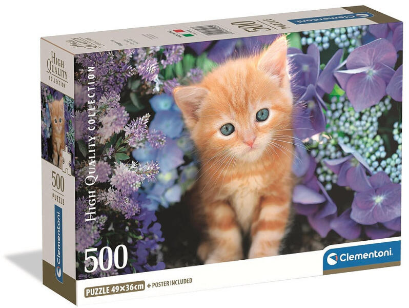 Vörös cica a virágok között 500db-os HQC kompakt puzzle - Clementoni Hivatalos magyarországi forgalmazótól. Leírás: Ha valami igazán aranyos, szívmelengető és látványos kirakót keresel a közös családi pillanatokhoz, a Cirmos cica a virágok között 500 darabos Clementoni puzzle biztosan elnyeri a tetszéseteket! A kép közepén egy kíváncsian néző, kék szemű, vörös cirmos kiscica üldögél, körülötte pedig élénk lila és kék virágok – hortenziák és levendulák – adják a tökéletes...