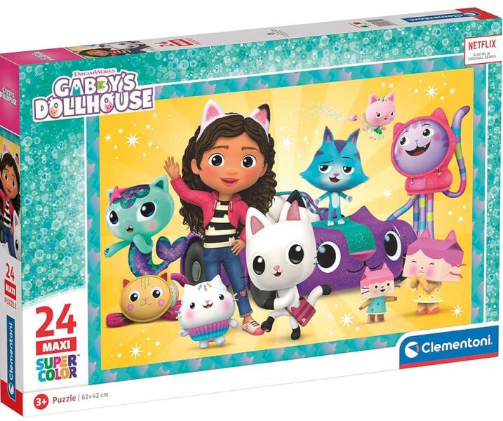 lépjen be gabi és a cicák színes világába!Induljon a kaland a népszerű Netflix sorozat, a Gabi babaháza elbűvölő szereplőivel! Ez a Clementoni Super Color Maxi puzzle egyenesen Gabi és vidám cica barátainak világába repíti a gyerekeket, ahol a fantázia és a kreativitás határtalan. A kirakós minden darabja egy újabb lépés a varázslatos babaház felfedezése felé. A készlet 24 nagyméretű puzzle elemet tartalmaz, melyeket kifejezetten a legkisebb, 3 éves korú gyermekek számára terveztek. A maxi darabokat könnyű megfogni, forgatni és a helyükre illeszteni, így a sikerélmény garantált. A játék során a kicsik nemcsak jól szórakoznak, hanem észrevétlenül fejlődnek is. A puzzle kirakása kiválóan fejleszti a finommotorikus készségeket , a szem-kéz koordinációt és a logikus gondolkodást. Miközben a gyermek a megfelelő darabokat keresi, javul a megfigyelőképessége és a problémamegoldó készsége is. A Clementoni SuperColor technológiájának köszönhetően a kép élénk és ragyogó, a tökéletesen illeszkedő elemek pedig egységes, sima felületet alkotnak. Az összeállított, kb. 62 x 42 cm méretű kép Gabi, Pandi Pajti, Cicus, Tündér Cica és a többi kedves karakter vidám csapatát ábrázolja. Az elkészült mű nemcsak a játék végét jelenti, hanem büszkeséggel töltheti el a kis alkotót. Bekeretezve a gyerekszoba csodálatos dísze lehet, amely mindig emlékezteti gyermekét a közös játék örömére. Lepje meg gyermekét ezzel a Gabi babaháza puzzle-lal, és figyelje meg, ahogy elmélyül a játékban, miközben fontos készségeket sajátít el! Ez a kirakó tökéletes ajándék minden kis rajongó számára. A játék előnyei
