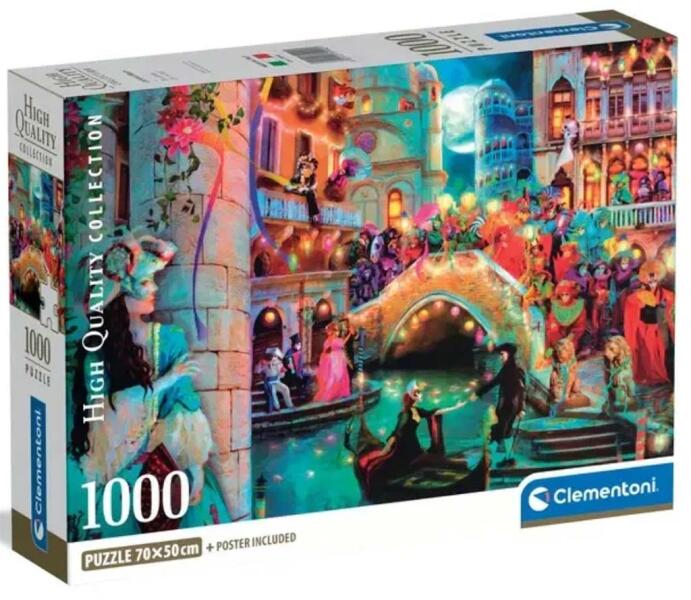 Karnevál a város utcáin 1000 db-os HQC puzzle poszterrel - Clementoni Hivatalos magyarországi forgalmazótól. Leírás: A Karnevál a város utcáin 1000 db-os HQC puzzle egy színes, élettel teli kirakó, amely egy varázslatos éjszakát idéz meg egy elegáns, maszkos karnevál forgatagában. A hangulatos városi csatorna, a fényárban úszó hidak és az ünneplő, díszes kosztümökbe öltözött emberek látványa azonnal magával ragad, és a kirakás során újra és újra rácsodálkozol a részletek...