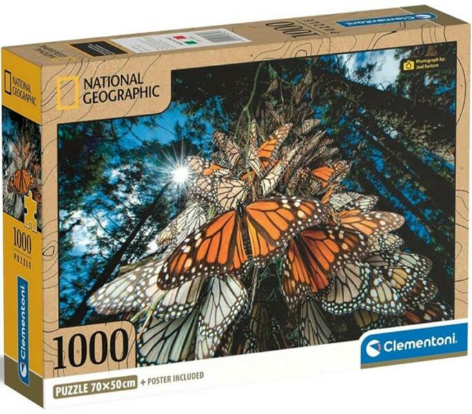 Hozza el otthonába a természet csodáját Joel Sartore díjnyertes fotójával!Merüljön el a természet lenyűgöző világában a Clementoni National Geographic kollekciójának ezen 1000 darabos puzzle-jével! A kirakó Joel Sartore híres fotóját, a "Milliónyi pillangó"-t ábrázolja, amely egy erdő mélyén, a fák között átsütő napfényben gyülekező pillangókat örökíti meg. Ez a puzzle nem csupán egy játék, hanem egy ablak a vadvilág egyik legszebb pillanatára, amely kihívást és egyben meditatív kikapcsolódást is kínál. A Clementoni elkötelezett a minőség iránt, így minden egyes puzzle darab strapabíró, újrahasznosított anyagokból készült és precíziós vágásnak köszönhetően az elemek tökéletesen illeszkednek egymáshoz. A magas minőségű nyomtatás biztosítja, hogy a kép színei élénkek és a részletek élesek legyenek, így a kirakás folyamata igazi vizuális élményt nyújt. A puzzle kirakása fejleszti a koncentrációt, a türelmet és a problémamegoldó képességet, miközben segít levezetni a napi stresszt. Az elkészült, kb. 70 x 50 cm méretű kép akár otthona dísze is lehet, bekeretezve megőrizheti ezt a csodálatos pillanatot. A termék a National Geographic Compact sorozat része, ami azt jelenti, hogy a megszokott minőség egy kisebb, környezettudatos csomagolásban érkezik, csökkentve a környezeti terhelést. A doboz egy posztert is tartalmaz, amely segítségére lehet a kirakás során. Szerezze be ezt a különleges puzzle-t, és élvezze az alkotás örömét!A játék előnyei