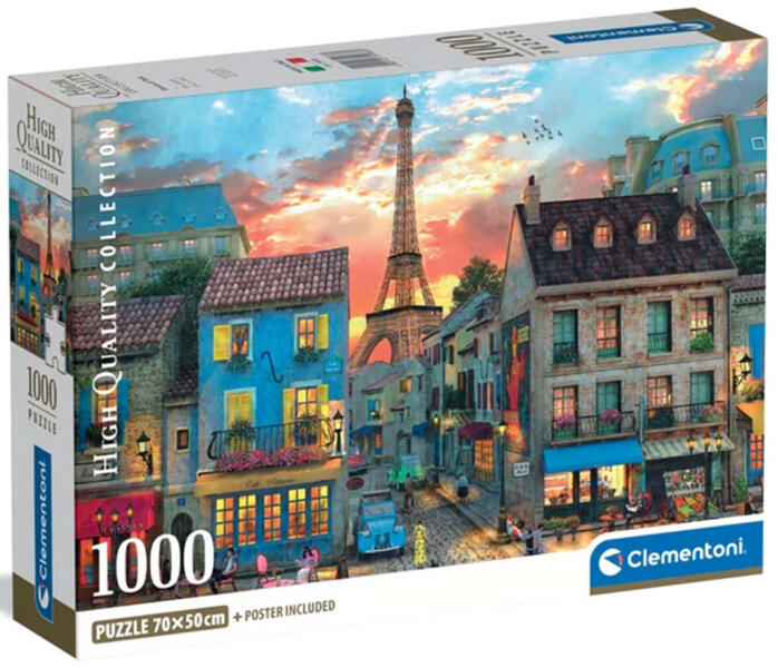 Párizs utcái 1000db-os HQC puzzle - Clementoni Hivatalos magyarországi forgalmazótól. Leírás: Ha egy igazán hangulatos, romantikus és színpompás puzzle-t keresel, akkor a Párizsi Esti Fények tökéletes választás lesz számotokra! Ez a 1000 darabos Clementoni puzzle elrepít a francia főváros szívébe, ahol a macskaköves utcák, hangulatos kávézók és a háttérben magasodó Eiffel-torony egy varázslatos naplementében úsznak. A kép vibráló színei és aprólékosan kidolgozott részletei...