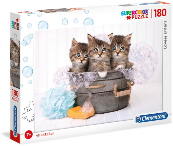 Hivatalos magyarországi forgalmazótól. Leírás: A prémium minőségű Clementoni puzzle összesen 180db alkotóelemből áll és elképesztően cuki kiscicákat ábrázol akik épp fürdőznek. A magas minőségnek, a fényes lakkozott felületnek és a gazdag színvilágnak köszönhetően a puzzle kirakása után kiválóan felhasználhatod akár gyermeked szobájának ékes díszeként, könyöklőként az íróasztal tetején vagy még sok más módon egyaránt. A kirakott képet PuzzleGlue 1000 ragasztó segítségével egy szempillantás alatt összeragaszthatod és az erős kötésnek köszönhetően pár perc után már fel is használhatod.   Tulajdonságok: - Édes kiscicák 180db-os prémium minőségű puzzle