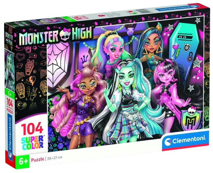 Lépjen be a Monster High szörnyen jó világába!Induljon a kaland a Monster High gimnázium folyosóin ezzel a lenyűgöző Clementoni Super Color puzzle-lel! Ez a 104 darabos kirakó tökéletes választás minden kis rajongó számára, aki szeretné kedvenc karaktereit...