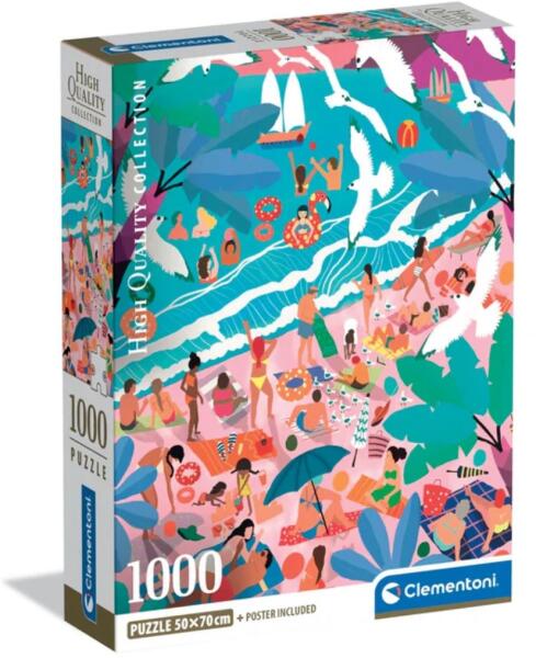 Vasárnap a strandon HQC 1000db-os puzzle - Clementoni Hivatalos magyarországi forgalmazótól. Leírás: A Vasárnap a strandon 1000 darabos puzzle a Clementoni High Quality Collection sorozatából egy igazi nyári hangulatú mestermű, ami játék közben elrepít a napfényes tengerpartra. A vidám, színes illusztráció telis-tele van élettel: fürdőzők, napozók, gyerekek, vízben játszók, és persze a tenger madarai – mind-mind egy nyüzsgő strand részletei. Ez a puzzle szuper választás, ha szeretnétek együtt lazulni és közben fejleszteni a megfigyelőképességet, türelmet és koncentrációt. A mellékelt poszter segít az összeállításban, utána pedig akár díszként is felkerülhet a falra! Jellemzők: