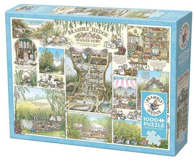 A nyár varázsát idéző Brambly Hedge történet tele van meleg színekkel és életvidám jelenetekkel. A Brambly Hedge Jill Barklem illusztrált gyerekkönyveinek sorozata, amely egy egérközösség kalandjait meséli el, akik a hangulatos angol vidéken élnek. A Cobble Hill 1000 db-os puzzle - Brambly Hedge Summer Story (40016)  részleteinek felfedezése örömteli kihívás minden puzzle rajongó számára.