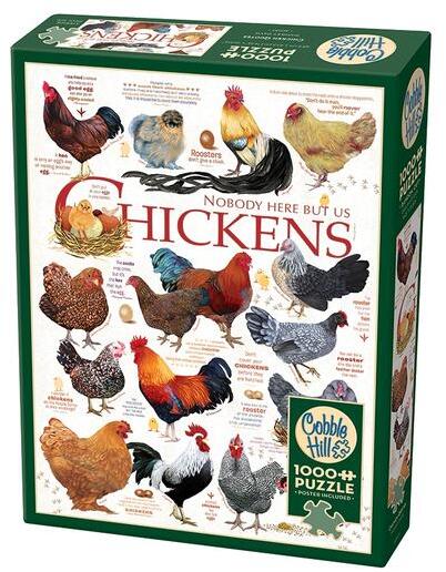 A Cobble Hill 1000 db-os puzzle - Chicken Quotes  című képen különböző csirkefajták láthatóak.