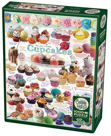 A kanadai Cobble Hil l  a nosztalgikus, színes, és mindemellett kiváló minőségű kirakókkal kívánja örvendetessé tenni a játék élményt kicsiknek és nagyoknak egyaránt.  A Cupcake Time 1000 db-os kirakón isteni muffinok láthatók.