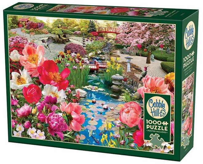 Merülj el a japán kert illatos, színes forgatagában a Cobble Hill 1000 db-os puzzle - Japanese Garden kirakóval! Itt mindenfelé pompás virágok nyílnak, madarak és különféle állatok bukkannak elő a fák és bokrok közül. Ezzel a kirakóval könnyedén átélheted a harmóniát és békét.